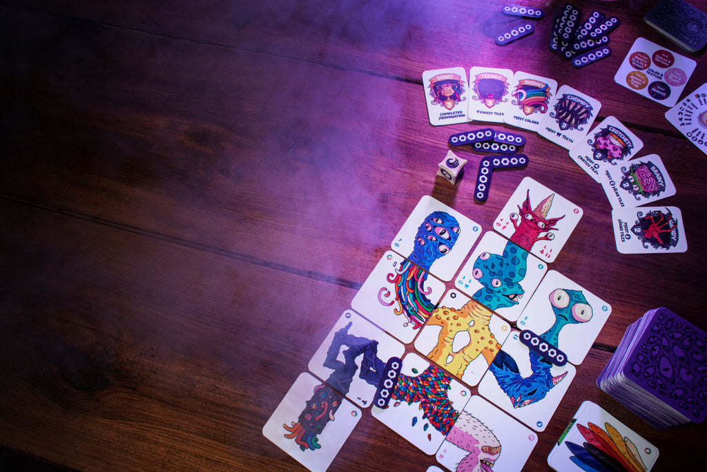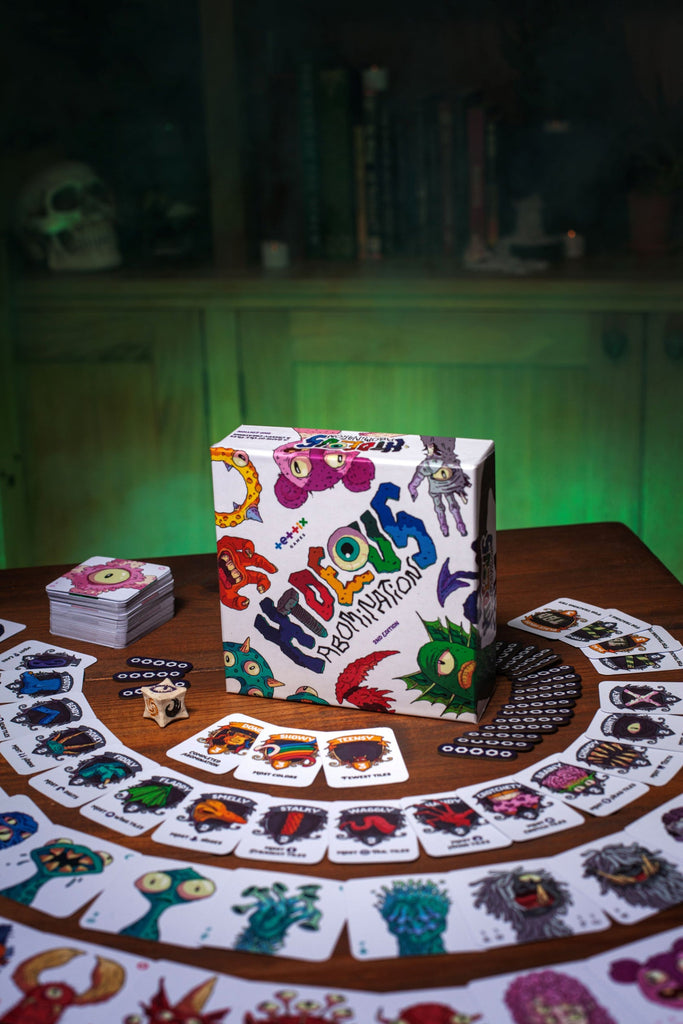 Sharpen your bone saws and practice your whipstitching, the competition has begun! Take turns laying body part tiles to build your own unique abomination, trying to get the most desirable features and win the most trophies. With randomized win