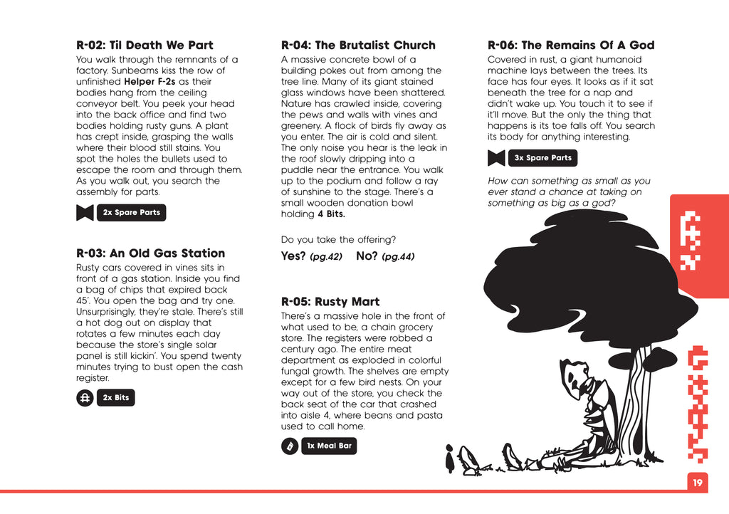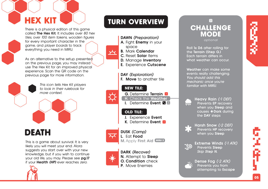 MIRU is a solo-first hexcrawling analog adventure game. Set in a post-solarpunk future, you play a character whose brother is killed by a robot. The next day, you pack your bag with a few supplies and foolishly head off into the uncharted wilderness to go kill the God responsible.