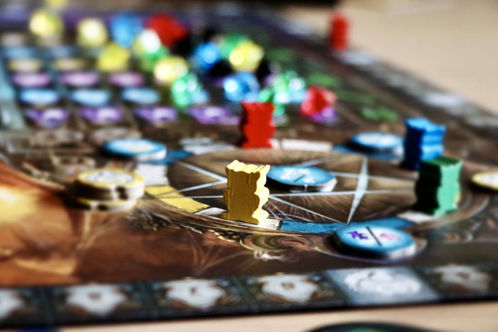 - Advance on a magic wand to gain points and take additional actions, with the actions being doubled should you currently be the most advanced player on the wand.