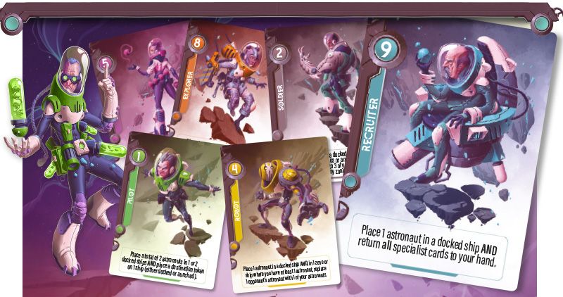 As the head of a mining corporation, these minerals and ice found on Mars could make you unfathomably wealthy – if you can reach them before your competitors. You have ten rounds to send your astronauts into space, occupy the planet's most resource-rich zones, and harvest as much celerium, sylvanite, and ice as possible. At your command is a team of nine professionals. Each has a unique skill set, from helping your astronauts traverse the Red Planet to blowing up spaceships before they launch.
